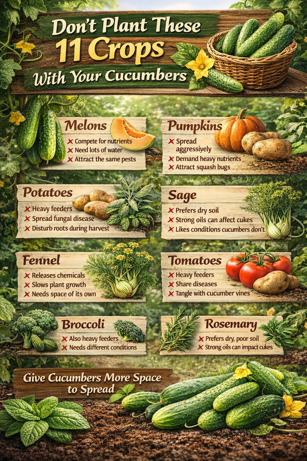 If you want healthy vines and a productive harvest, here are 11 crops you should keep away from cucumbers.