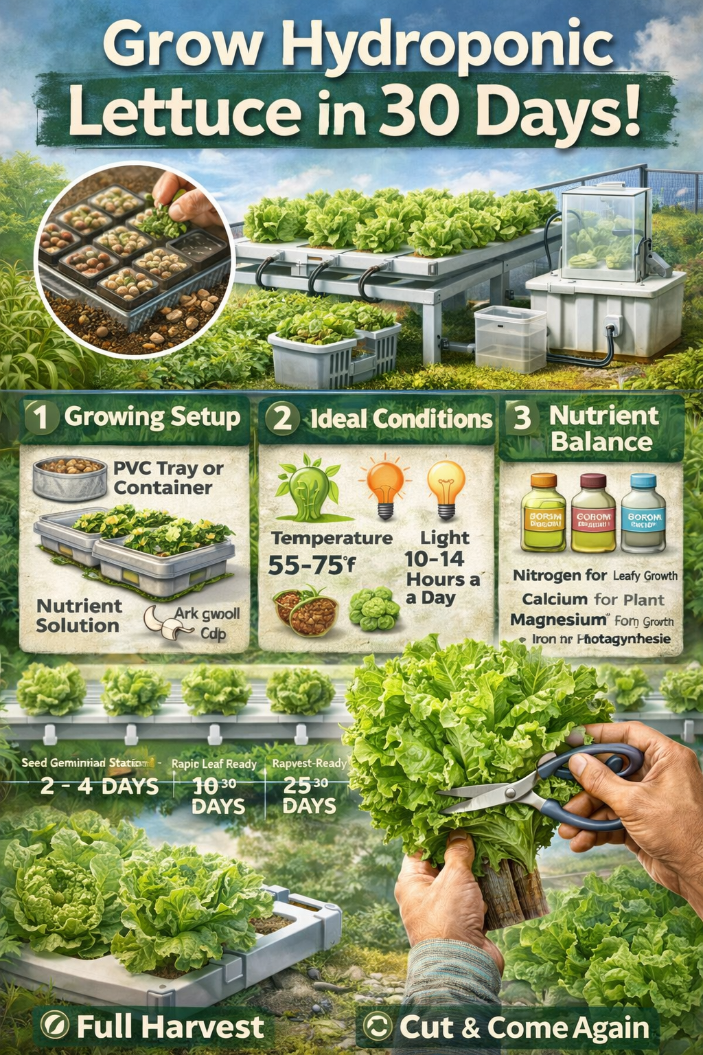 Growing your own food doesnβt always require a large garden or perfect soil. Hydroponic gardeningβgrowing plants in nutrient-rich water instead of soilβhas become a popular way for home growers to produce fresh vegetables quickly and efficiently. One of the easiest crops to start with is lettuce. Under the right conditions, itβs possible to grow crisp, healthy lettuce in about 30 days.