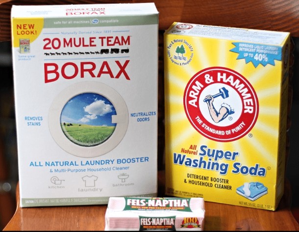 Mix 1 tsp borax + 1 tsp dish soap + 4 cups warm water.