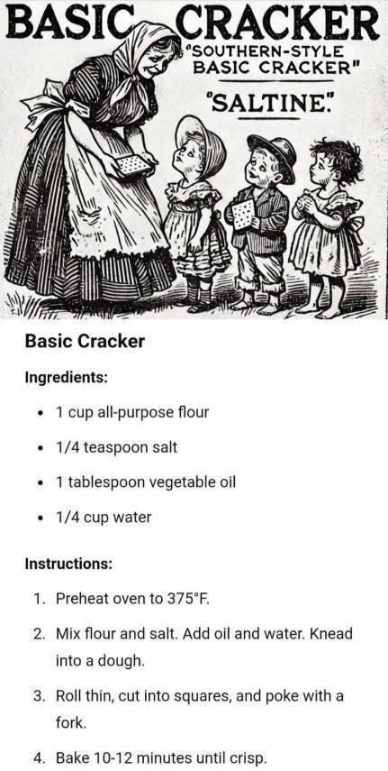 “Found this post in a community I’m part of and thought this group would appreciate it. I love saltines, but not the chemicals and junk that go into mass-producing them. This homemade saltine recipe is simple and shelf stable”