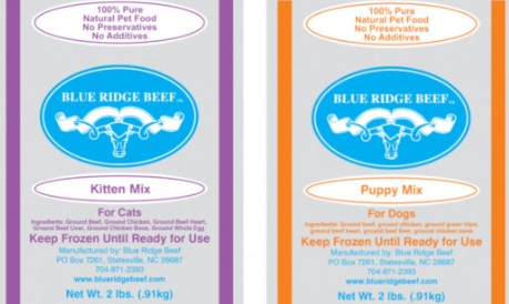 Blue Ridge Beef is recalling 1,080 pounds of their 2-pound Kitten Mix (Lot # N26 0114) and 1,380 pounds of their 2-pound Puppy Mix (Lot # N25 1230) because of contamination with Salmonella and Listeria monocytogenes.