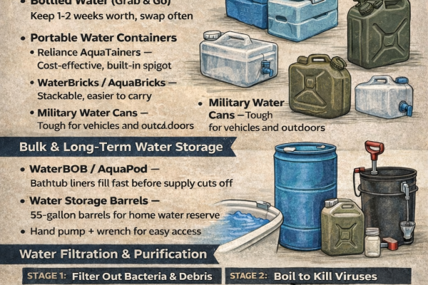 🌊 Water Storage & Purification (Prepper Basics That Actually Matter) 💧 Clean water is non-negotiable. And in a disaster, the tap can turn…