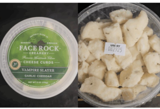 Face Rock Creamery of Bandon, OR, is recalling two lots of Vampire Slayer Garlic Cheddar Curds (6 oz. cups, use-by Aug. 8) due to potential Listeria contamination. Sold at Trader Joe’s in Northern California and Nevada, affected products have UPC 8 51222 00528 7, Lot numbers 20250519VS01 and 20250519VS02, with use-by 08/29/2025. No illnesses reported. Listeria can cause serious infections; consumers should seek medical help if symptoms appear and monitor for up to 70 days.
