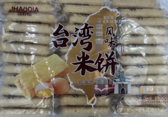 JHAÖQIA brand Taiwanese style rice crackers, egg yolk flavor, are being recalled in Canada after a consumer reported an allergic reaction.