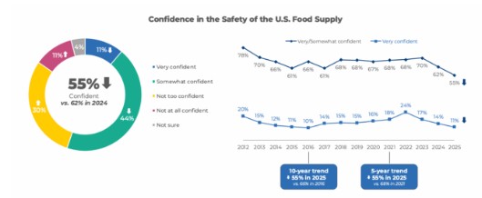Thumbs up or down? A new IFIC survey shows confidence in U.S. food safety just hit an all-time low. This marks 20 years of tracking beliefs and behaviors, but 2025 numbers show a sharp decline—especially among Gen Z (ages 13–28) and higher-income households. Across nearly all demographics, trust in the food supply is falling fast. A growing number of Americans are questioning what’s really safe to eat.