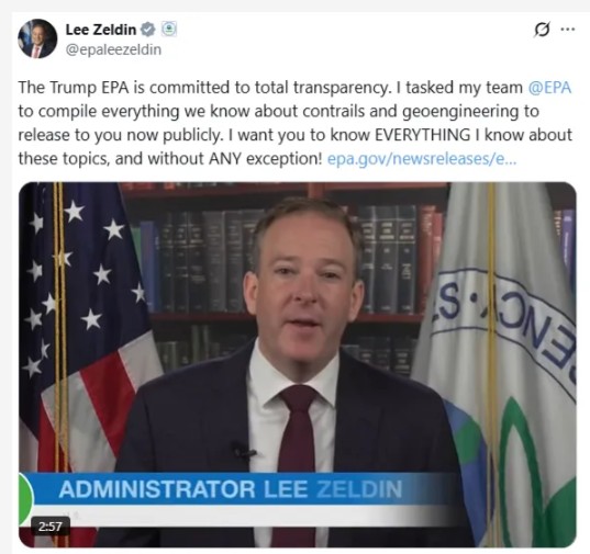 The EPA is set to release “everything we know” about weather modification and geoengineering, EPA Administrator Lee Zeldin announced Thursday on X. Zeldin acknowledged that Americans with valid concerns have been ignored or ridiculed for years. “That era is over,” he said, pledging full transparency on geoengineering, contrails, and related programs. The move signals a major shift in how the government addresses public concern over weather manipulation.