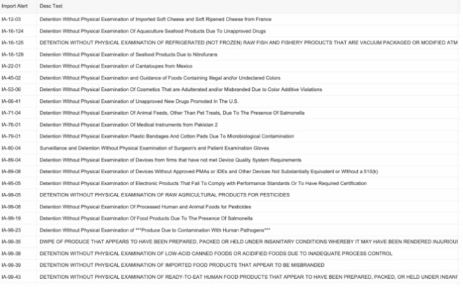 Recent modifications to FDA’s import alerts, as posted by the agency, are listed below.