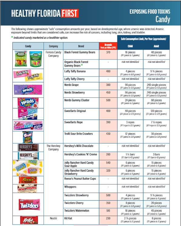 Health Politics & Law Bad candy: 80% of sweets tested have elevated levels of arsenic, DeSantises say