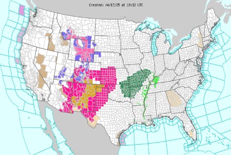 The Storm Prediction Center has issued multiple warnings for severe thunderstorms, large hail, damaging winds, and the potential for tornadoes across a broad swath of the central U.S., including parts of Texas, Oklahoma, Arkansas, Missouri, Illinois, Kentucky, Tennessee, and surrounding areas.