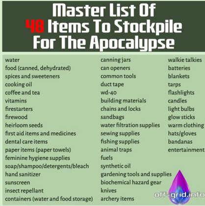 Here’s a master list of essential items to stockpile for the apocalypse. Focus on long-lasting food, clean water, medical supplies, tools, and hygiene products. Don’t forget batteries, fuel, and important documents. Include seeds for growing food, clothing, and barter items. Preparing now means being ready for anything—whether natural disasters, economic collapse, or other emergencies. Build your stockpile wisely to protect yourself and your family.