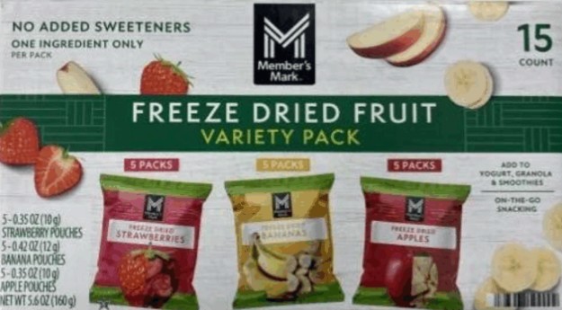 Doehler Dry Ingredient Solutions LLC is recalling 22 varieties of Member’s Mark Freeze Dried Fruit Variety Pack (15 ct) due to Listeria contamination. No illnesses have been reported. The issue was found through internal testing. Products were sold at Sam’s Club between July 1–25 and shipped to 43 states. Affected boxes have UPC 1 93968 50900 2 and specific lot numbers and expiration dates listed on the case bottom.