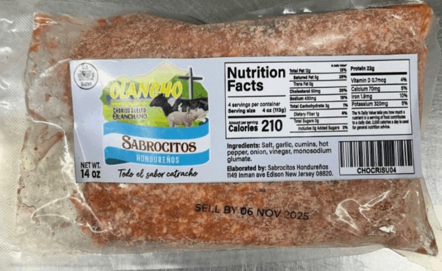 Sabrositos Hondurenos, Edison, NJ, is recalling 32,000 lbs of meat with false USDA inspection labels (“Est. 1785”). Products include chorizo, pork chops, and ribs produced before Aug. 20. Food without inspection may contain allergens, bacteria, or other hazards. Consumers and restaurants should consider these items unsafe.