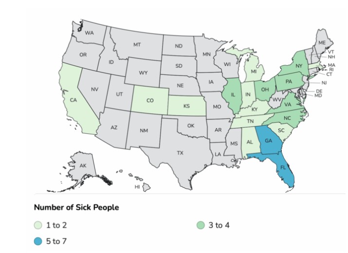 As of May 30, 45 people across 18 states had been infected. Sixteen people have been hospitalized, according to the Centers for Disease Control and Prevention. The patients range in age from 2 to 84 years old.