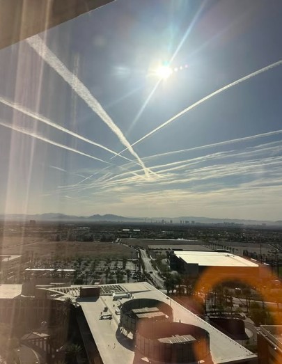 “Woke up to chemtrails over Vegas this morning. Looks like pretty decent coverage. Keep your eyes on the skies and your minds sharp.