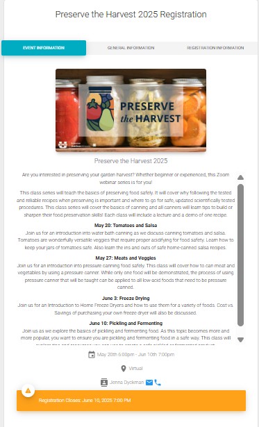 “Hey everyone! I’m part of a group on Facebook and wanted to share this with the community. I’m new to this platform and looking forward to learning from all of you. For those interested in preserving your harvest, there are free online classes every Tuesday from 6–7 PM—great info for beginners and pros alike!”