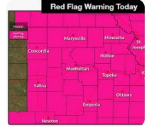 The National Weather Service (NWS) issued red-flag warnings for northeastern Colorado, central Nebraska, and much of western Kansas. Fires that develop will catch and spread quickly, the NWS said.