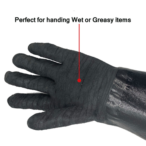 This glove is made of food-grade neoprene. It has waterproof, fireproof and antifouling properties. It is soft in texture, cool and comfortable. The palm design can maintain the flexibility of your hands and protect your hands when you grill or cook