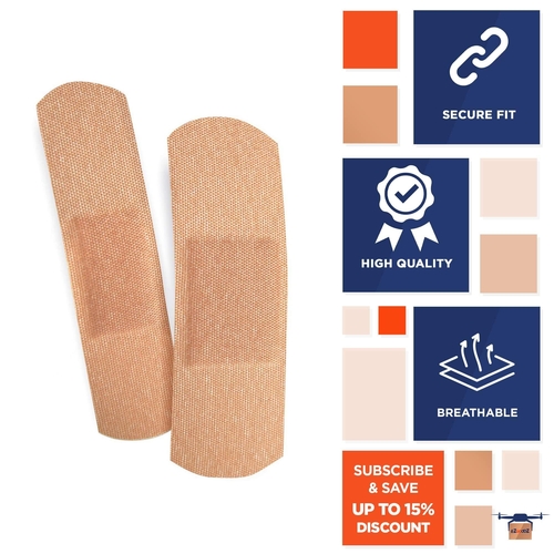 NON-ADHERENT PAD & ADHESIVE BORDER: Each first aid bandage has non-adherent pad in the center which cushions the wound without sticking. Breathable adhesive border provides gentle, secure, long-lasting fixation with little interruption to surrounding or healing skin tissue. CONVENIENT WOUND CARE: Sterile fabric bandages help promote cleanliness and further protect against infection.