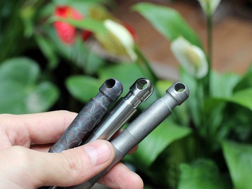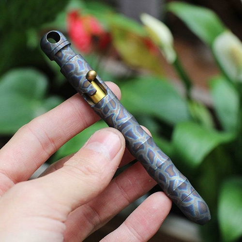 Material: TC4 Titanium Alloy Color: Titanium Natural, Titanium Stone Wash, Titanium Flame Length: 120mm Diameter: 14mm Net Weight: 46g Package Included: 1pcs Titanium Tactical Pen with 2pcs refills