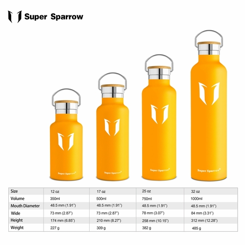 PREMIUM QUALITY DESIGN AND FUNCTIONALITY – We designed the Super Sparrow bottle to look and function better than any other Stainless Steel Water Bottle! It is ergonomically shaped to make one-handed use a breeze, with perfect for hardwearing use,unlike cheap plastic that can split and crack. It is both stylish and convenient to use, and each bottle comes in a free gift box for a great present.