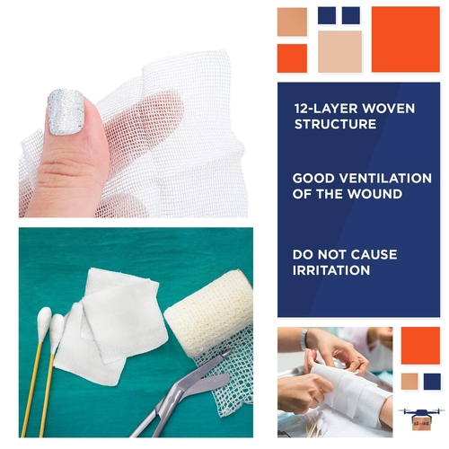 First aid gauze square is suitable for applying ointments, gels, creams, liquid cleansing and toning cosmetics, nail polish remover, etc. Thus, our cotton sponge pad can be used in beauty and tattoo salons, vet and dental clinics, hospitals and, of course, at home.
