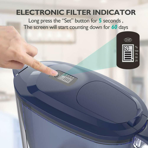 the space-efficient pitcher fits perfectly on refrigerator shelves and is meet for families drinking water demand. Electronic Filter Indicator: After about 60 days (or after filtering 40 gallons), it’ll be time to change the filter.