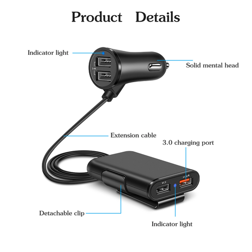 Rear Car Charger Size: 8*5*1.6cm/3.2*2*0.6”(L*W*H)
