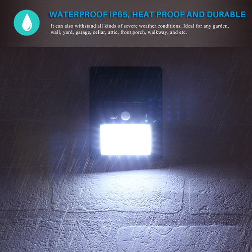 Waterproof IP65, heat proof and durable, It can also withstand all kinds of severe weather conditions. Ideal for any garden, wall, yard, garage, cellar, attic, front porch, walkway, and etc.