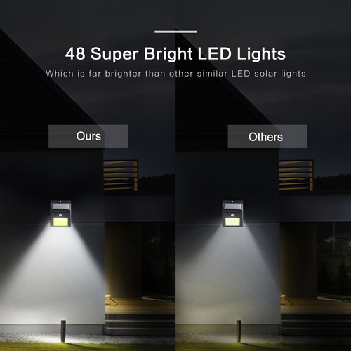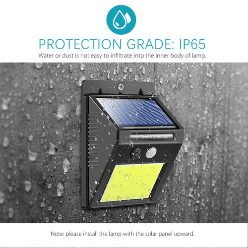 IP65 waterproof, this light can withstand all kinds of severe weather conditions outdoor. No wiring needed when installing, this light can be easily mounted anywhere under the sun shines. Just simply mount the LED solar sensor light on the wall with the included screws.