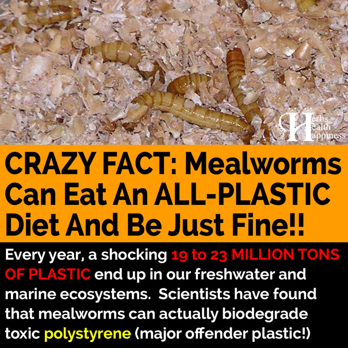 A study by Stanford discovered that mealworms could offer a solution to our growing plastic problem. [1] Two studies co-authored by Wei-Min Wu, a senior research engineer in the Department of Civil and Environmental Engineering at Stanford, revealed that mealworms could subsist entirely on Styrofoam / polystyrene! [2] Apparently, according to Wu’s studies, the mealworm’s gut is filled with microorganisms that are able to biodegrade polystyrene and to some extent polyethylene. [3] The papers were published in Environmental Science and Technology with co-authors Professor Jun Yang and his doctorate student Yu Yang of Beihang University.