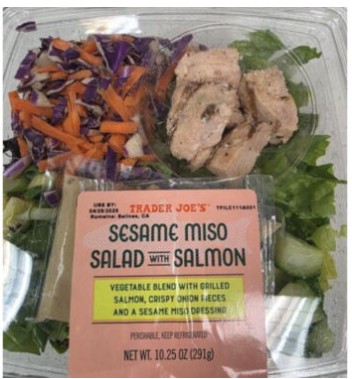 Taylor Fresh Foods of Illinois is recalling a limited quantity of Trader Joe’s Sesame Miso Salad with Salmon, 10.25oz, because of an undeclared milk allergen.