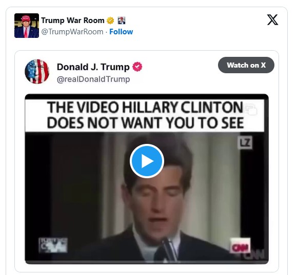 President Donald Trump on Saturday shared a video pushing a long-debunked conspiracy theories about Bill and Hillary Clinton – as well as other Democrats – being the murderous forces behind multiple deaths.