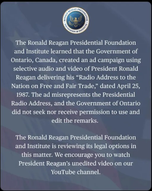President Trump has ended all trade negotiations with Canada, accusing Ontario’s government of launching an “information war” through a $75 million ad campaign using fake Ronald Reagan audio criticizing tariffs. The ads aired across major U.S. networks. Trump called the move “fraudulent interference” aimed at influencing court decisions, defending tariffs as vital to U.S. national security and the economy. The decision marks a sharp escalation in U.S.–Canada trade tensions.