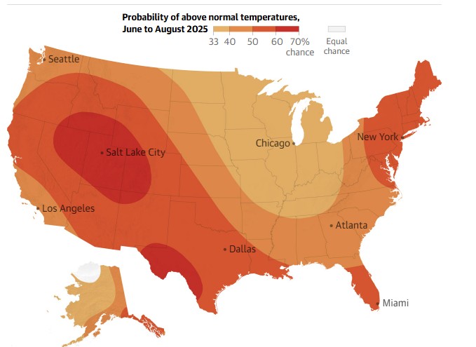 Summer 2025 is shaping up to be one of the hottest on record in the U.S., with extreme heat expected nearly everywhere except far northern Alaska, says NOAA. Early 90Β°F temps hit Minnesota in May, sparking wildfires and a National Guard call-up. Rapid snowmelt in the West is fueling drought and fire risk, while dry conditions persist in Florida and the Mid-Atlantic. Experts warn that cuts to key federal agencies could hinder forecasting and disaster response, putting lives at risk.