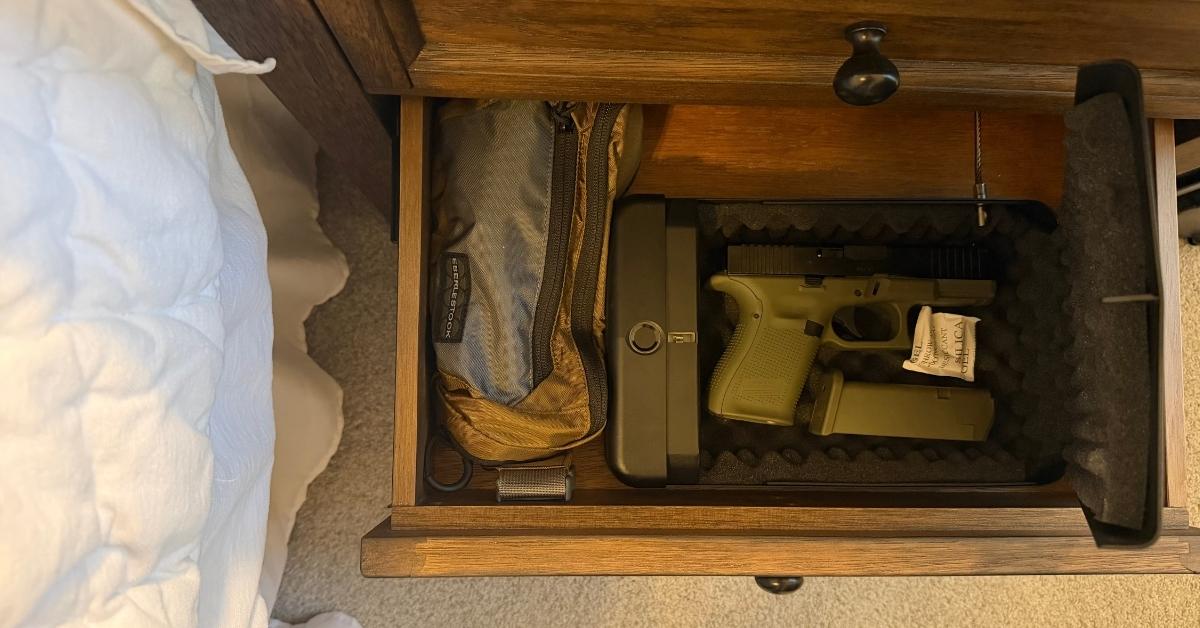 I have a Bando bag with all of the stay-home gear inside it, and the entire bag lives in my top nightstand drawer. In the event of an emergency, I grab that bag, my phone, watch, wallet, and keys from the top of my nightstand, and the pistol out of my biometric gun safe in the drawer under my WUSH bag.
